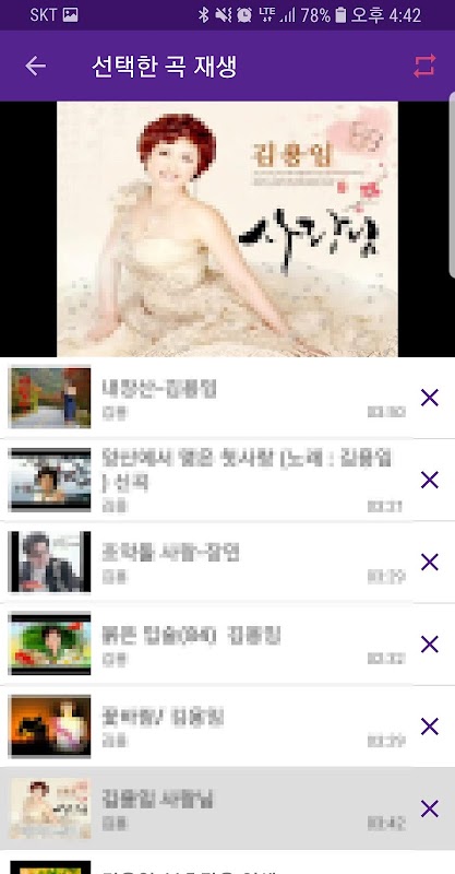 - 십팔번곡을 반복재생 할 수 있습니다.