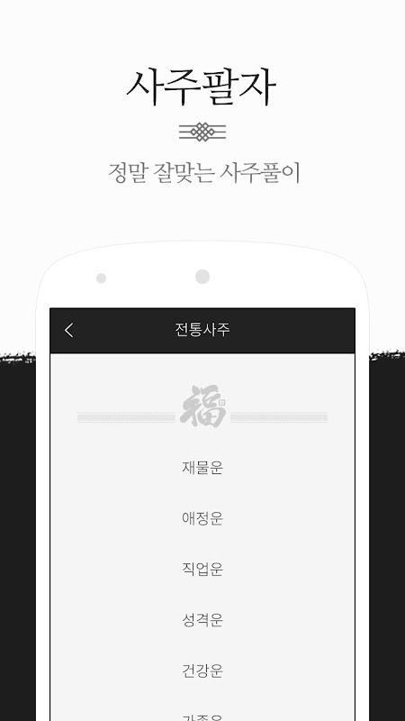 ★전통사주 - 타고난 재물운, 애정운, 직업운, 성격운 등을 운세풀이 및 집중분석으로 다양한 내용을 제공합니다.