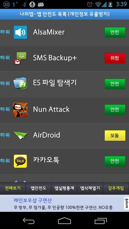 내 폰에 설치된 앱 개인정보 표시 (필수)