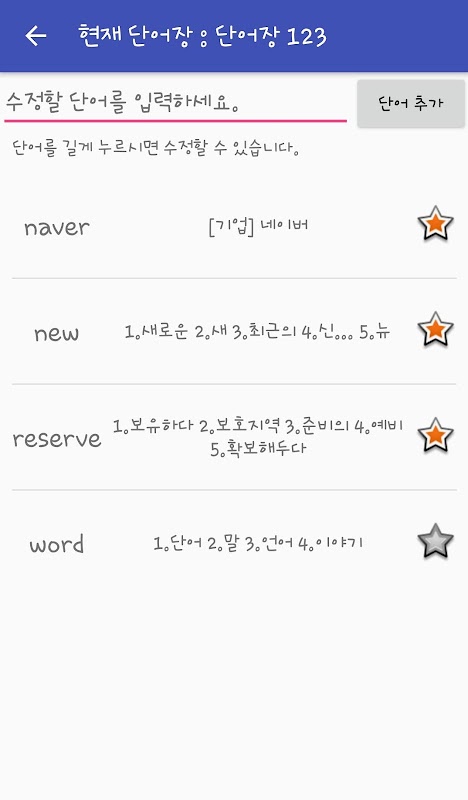 3. 저장한 단어들을 확인하고 수정하거나 지우거나 별표시를 할 수 있는 'Edit' 메뉴!