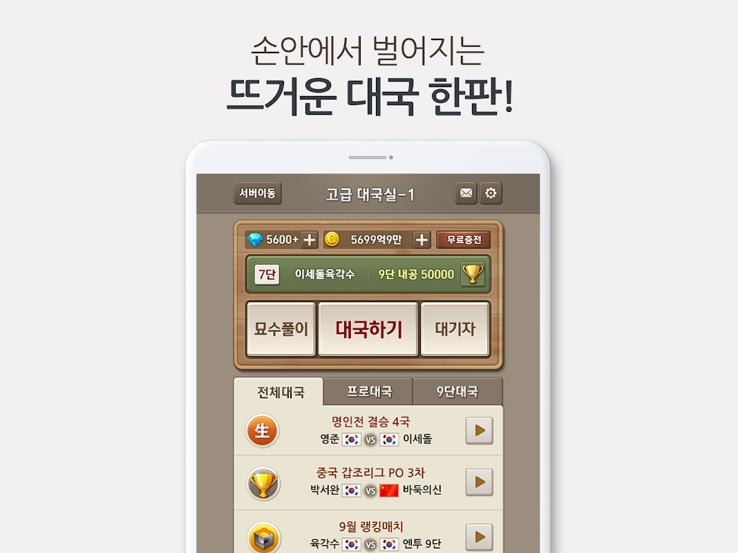 Poznaj wszystkie Go, Netmarble Go, na telefonie komórkowym. Zawsze i wszędzie, ciesz się transmisją w czasie rzeczywistym i profesjonalną grą!