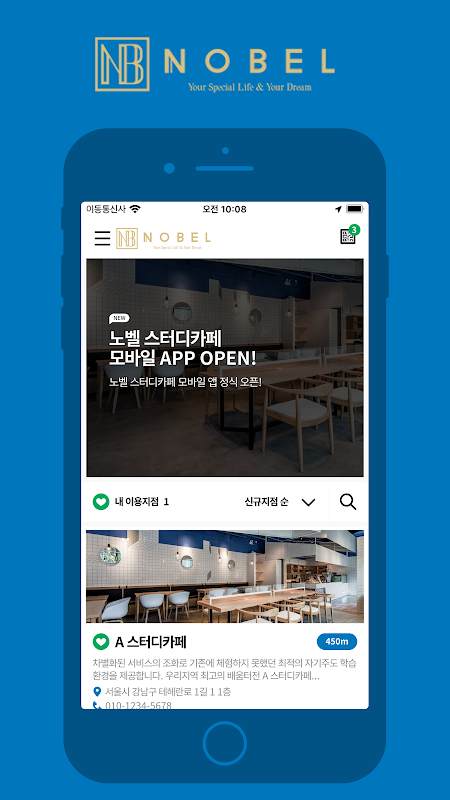Aplikacja Nobel Study Cafe to zróżnicowana aplikacja usług premium stworzona, aby klienci korzystający z Nobel Study Cafe mogli z łatwością korzystać z udogodnień.