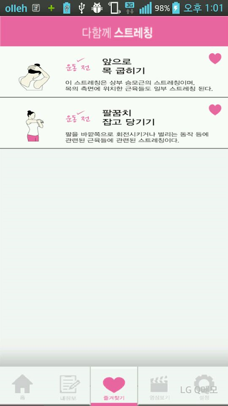 스트레칭 동작설명 부분의 ♥를 눌러주세요.