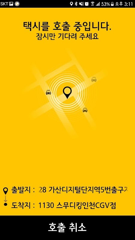 - 차량위치정보제공(배차후 손님위치까지 차량이동상황, 도착시간 제공)