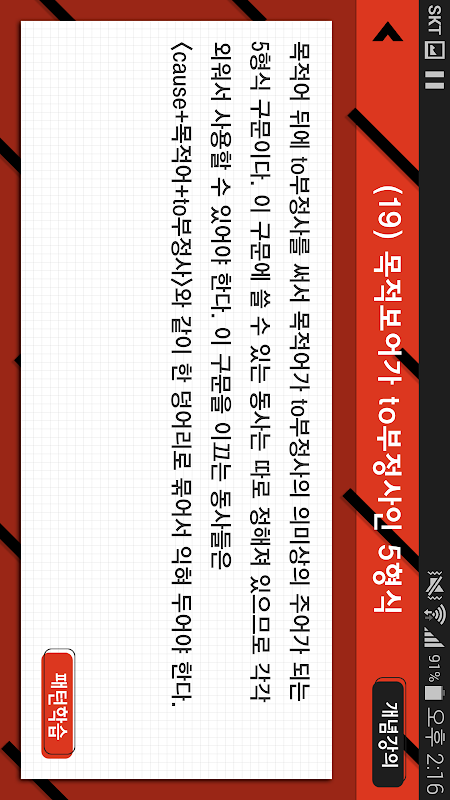 ** 패턴 학습은 먼저 영어 문장만 보면서 해석을 해보고 정답 패턴을 확인한 후
