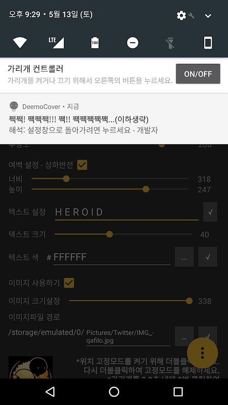 - 가리개가 켜져있을 때 화면 방향을 강제로 고정할 수 있는 옵션을 추가했습니다. (추가기능에서 해당 옵션을 켜야 동작합니다)
