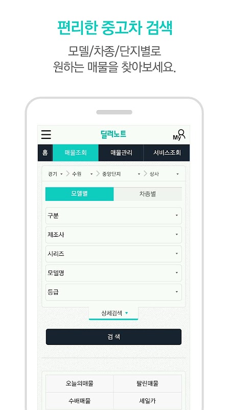수도권의 딜러보유 실매물 이미지와 정보를 딜러들의 요구에 맞게 간편하게 검색할 수 있고,