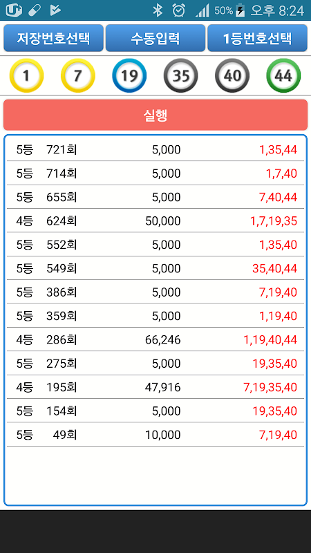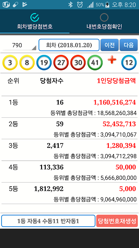 5. 자동 또는 수동으로 생성된 번호를 과거 회차별로 당첨여부를 확인할 수 있읍니다.