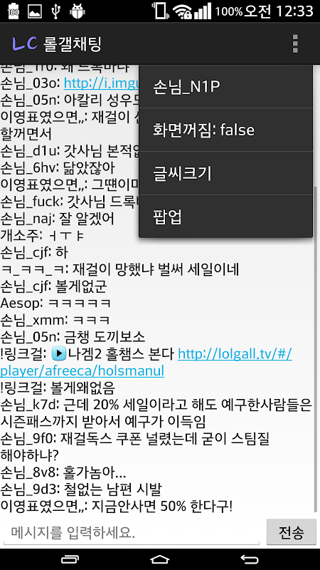 더블탭해서 나온 창을 이용해 대화를 전송합니다.