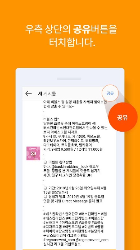 쉽고 빠르게 리그램 이벤트에 참여하세요.