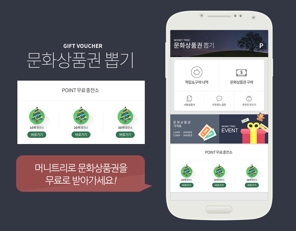 머니트리는 문화상품권을 무료로 얻을 수 있는 어플입니다.