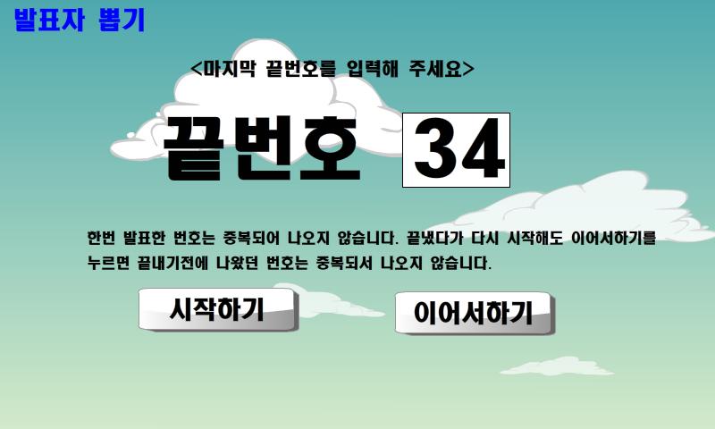 처음부터 다시하려면 끝번호를 넣고 시작하기를 누르면 됩니다.