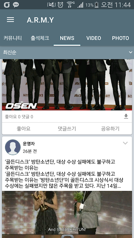 A.R.M.Y - 방탄소년단 BTS 팬 커뮤니티 영상 뉴스 SNS 스케줄 그리고 다양한 정보를 한눈에 볼 수 있는 종합 커뮤니티 어플리케이션 입니다.