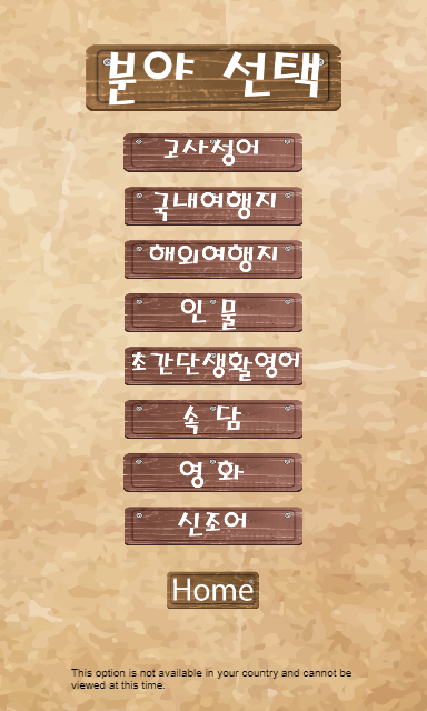 이 어플의 구성은 고사성어(사자성어) 가볼만한 국내여행지 해외여행지 100선 인물.인명 생활영어회화 속담 영화 신조어 총8가지 입니다