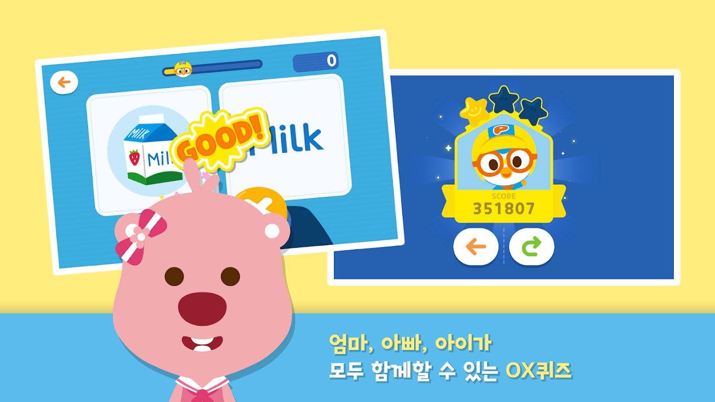 • Baw się z Pororo i ucz się liter i słów o różnej tematyce.