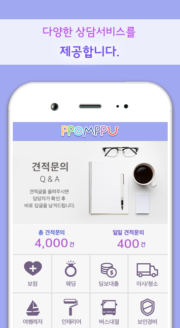 뽐뿌견적은 생활에 필요한 여러가지 상담서비스/견적서비스를 제공합니다.