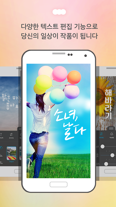 산돌 폰트를 활용한 사진 텍스트 에디터의 탄생!448종의 폰트로 사진 위에 메시지를 남겨 보세요.사진에 감성을 더하다, 산돌구름 카메라