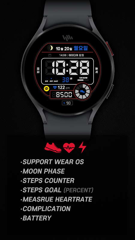 Ta tarcza zegarka to cyfrowy zegarek WatchFace.