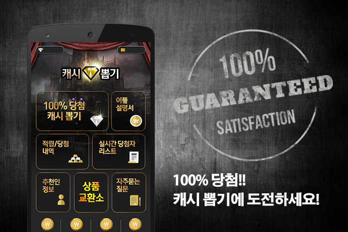 매일 어플을 실행하시면 밤 12시 기준으로 랜덤으로 1~3장의 캐시 뽑기권을 드립니다.