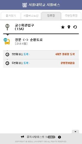 Shuttle service location notification of Seoul National University