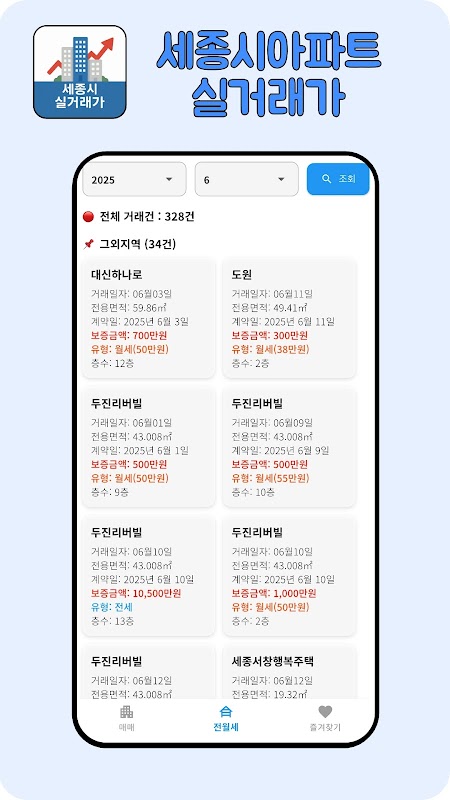 Informacje 세종시 아파트 매매,전세,월세 실거래가 APK