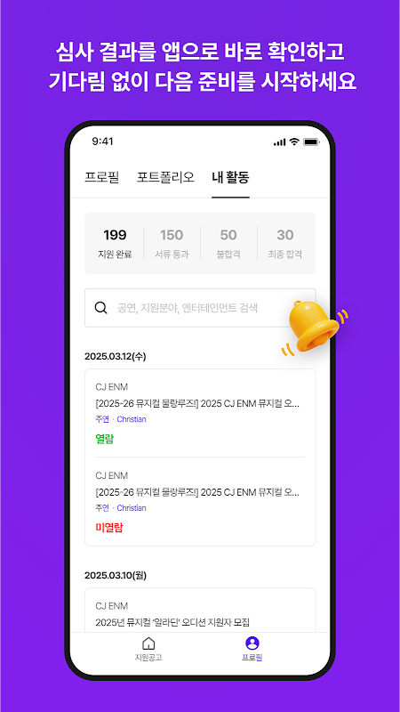 Od wyszukiwania informacji o przesłuchaniach i aplikacji, po sprawdzanie wyników i ofert rozmów kwalifikacyjnych – wszystko odbywa się wygodnie za pomocą jednej aplikacji.