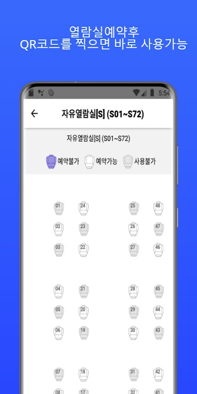 Mobilny system rezerwacji miejsc w bibliotece Suwon Women's University.
