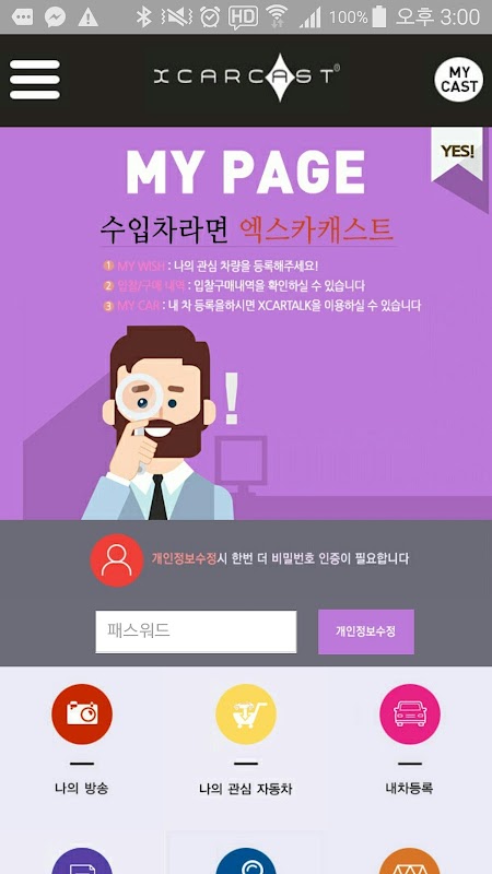 수입중고차 캐스트, 옥션, 톡기능으로 수입중고차의 새로운 거래장터! 캐스트를 통해서 보는 동영상 차량확인, 앱을 통한 직거래, 엑스카톡으로 직접 정보교환!