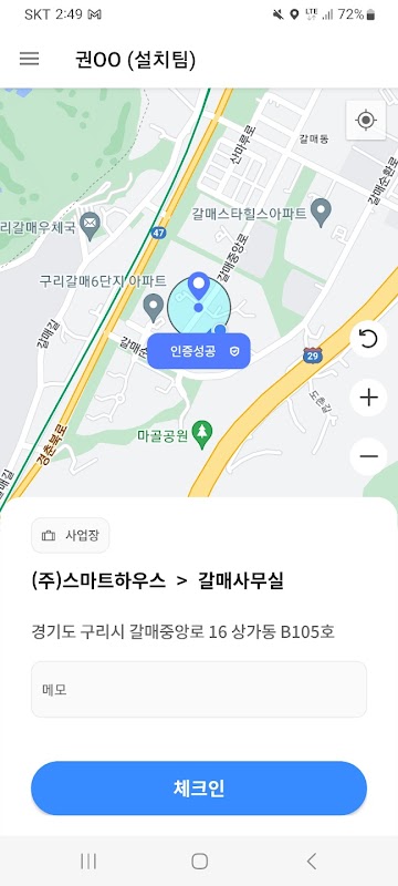 ▶ Uwierzytelnij się, porównując lokalizację pracy zarejestrowaną przez firmę z lokalizacją GPS smartfona.