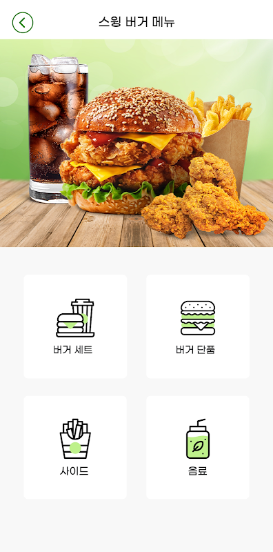 스윙투앱으로 제작된 레스토랑 업종 픽업 및 포장 전문 샘플앱입니다.