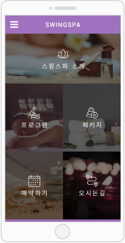 스윙투앱으로 제작된 스파 업종 샘플앱입니다.