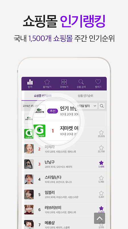 1,700개 여성쇼핑몰 순위를 한눈에! 매순간 업데이트되는 공정한 랭킹, 이제는 모바일로 편하게 확인하세요.