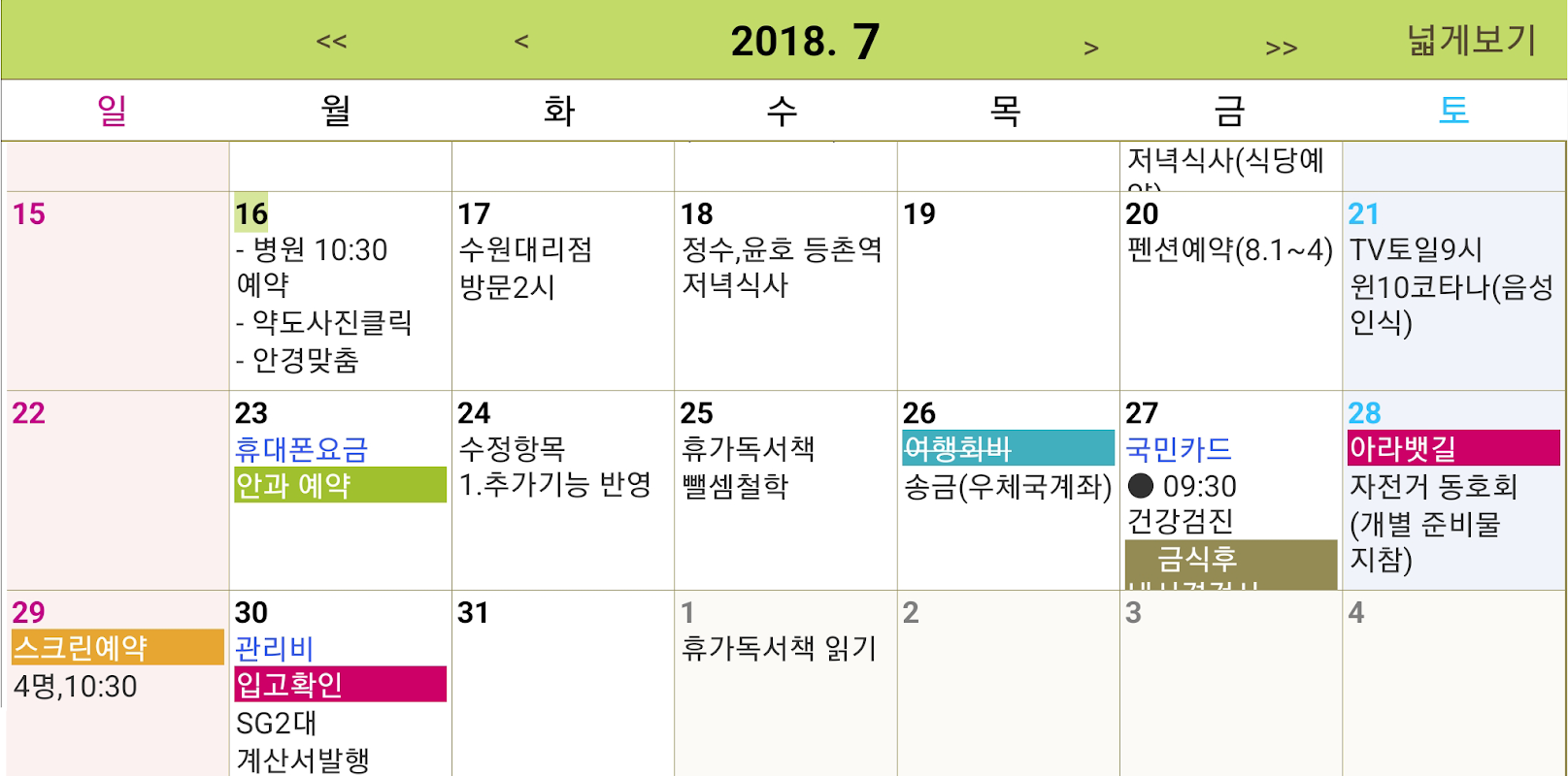 - 상태바 오늘일정 : 상태바를 내리면, 오늘일정 자동표시