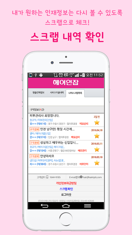맞춤인재정보가 등록과 동시에 실시간 푸시로 알림기능까지!