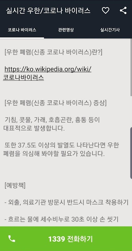 코로나 바이러스 , 중국 우한 발병한 바이러스에 관련된 기사와 유튜브의 내용을 실시간으로 제공하는