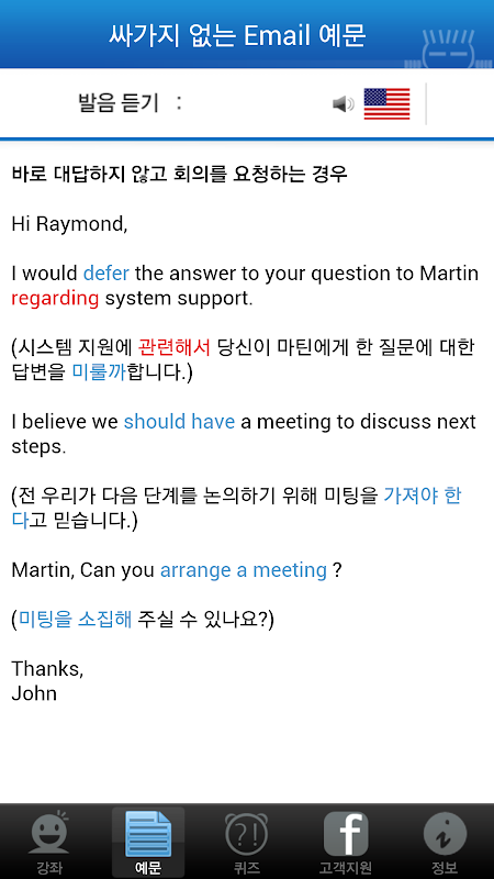 이 앱은 외국계 기업, 국내 대기업 북미 담당을 거쳐 현재 북미 대기업에 재직하고 있는 '싸가지'씨의 경험을 바탕으로 영문 이메일 작성을 통한 생생한 현지 영어와 “영어다운” 영작문을 배울 수 있는 기회를 제공합니다.