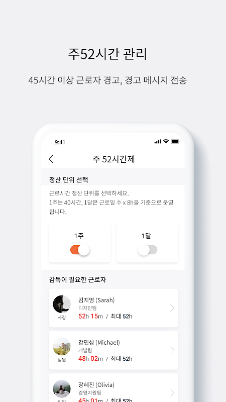 근로자들의 연차관리, 주52시간 관리, 근태관리 등
