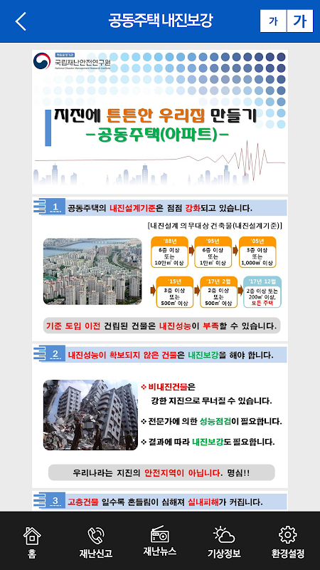 - Zawiera krajowe wytyczne dotyczące działań w przypadku każdego rodzaju katastrofy, takiej jak trzęsienia ziemi i tajfuny, oraz metody reagowania w sytuacjach awaryjnych, takie jak resuscytacja krążeniowo-oddechowa