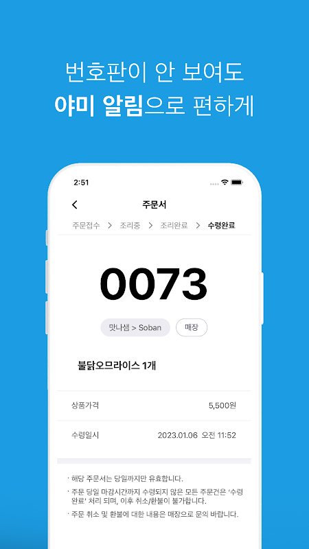 Przycisk odbioru na tablicy numerów telefonów komórkowych otrzymany po otrzymaniu zamówienia na jedzenie jest aktywowany po otrzymaniu jedzenia. Jeśli klikniesz przycisk odbioru raz, zostanie on przetworzony jako odbiór kompletny. Koniec z marnowaniem papieru dzięki niewygodnym stolikom do zamawiania papieru.