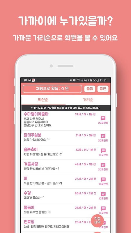가까운 거리의 친구들을 만들 수 있는 무료 영상채팅 어플입니다.