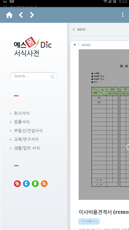 O 예스폼 서식사전 APP-회사서식,법률,계약서,자기소개서