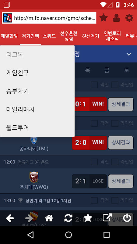 네이버 풋볼데이, 야구9단 2015 등 웹게임 전용 모바일 브라우저빠른메뉴, 매크로, 경기시작 알람기능등 반복 작업 및 시간을 줄여드립니다.