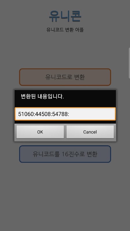 '유니코드로 변환'을 누르고 변환하고 싶은 내용을 넣으면, 변환해서 반환해줍니다.