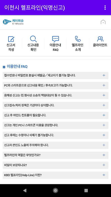 Korea Business Ethics Management Institute (KBEI), który produkuje i dystrybuuje aplikację Icheon City Helpline (Anonymous Reporting) jest pierwszym instytutem badawczym specjalizującym się w zarządzaniu etycznym w Korei, utworzonym w celu wspierania etycznego zarządzania przedsiębiorstwami, finansami i instytucjami publicznymi.