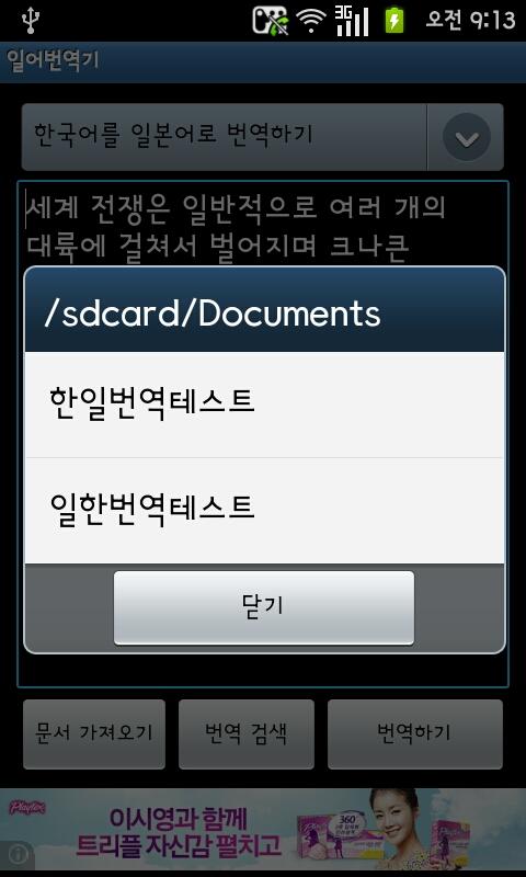 *향상된 번역으로 한글, 일어 텍스트 문서를