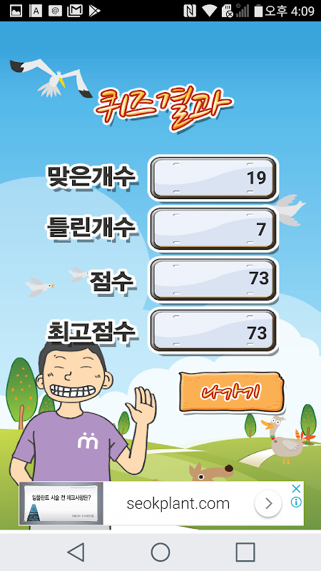 첫 화면에서 시작하기를 터치하시고 다음 화면에 나타난 "Go"를 터치하면 퀴즈 풀기가 시작됩니다. 정답과 오답이 될때마다 "O"와 "X"가 나오는데 이를 터치해야 다음 문제로 넘어갑니다.