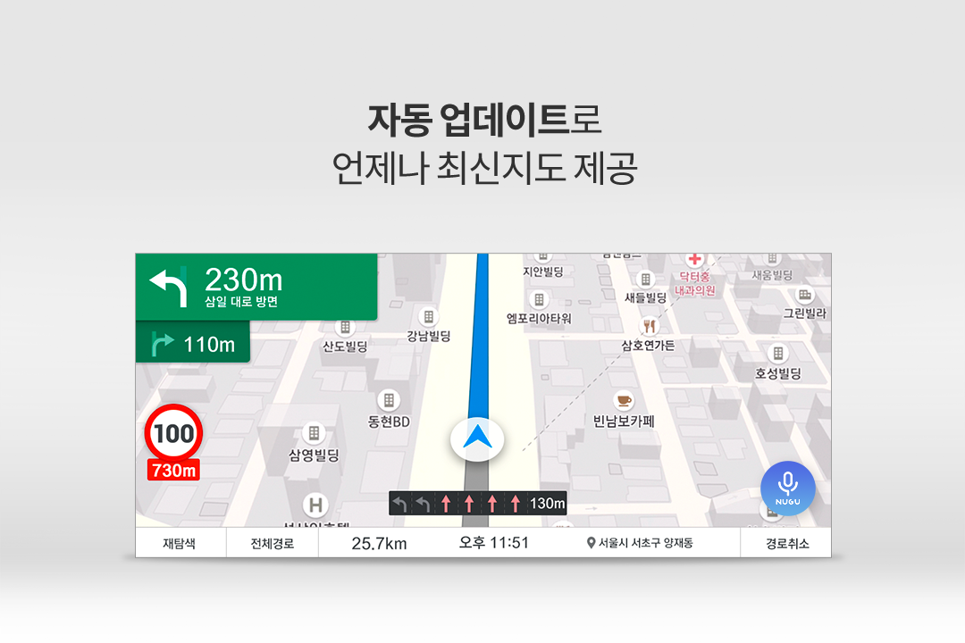 -. Zapewnia usługi sztucznej inteligencji w oparciu o rozpoznawanie mowy za pośrednictwem aplikacji NUGU AI. Zintegrowane wyszukiwanie / prowadzenie do celu / połączenie przestrzenne / multimedialne za pomocą poleceń głosowych jest obsługiwane bez żadnych specjalnych operacji.