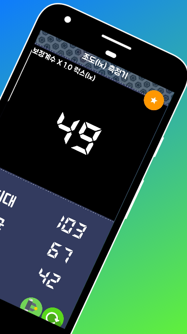 조도 측정기는 스마트폰 조도 밝기 측정 센서를 사용하여 주변 밝기를 Lux(lx) 단위의 값으로 쉽고 간단하게 측정할 수 있는 조도 측정기입니다