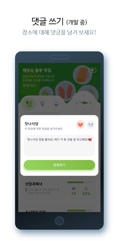 Ta aplikacja klasyfikuje komentarze dotyczące głównych atrakcji turystycznych wyspy Jeju na pozytywne i negatywne za pomocą sztucznej inteligencji i rekomenduje atrakcje turystyczne z wysokim odsetkiem pozytywnych komentarzy na podstawie ustawień użytkownika.