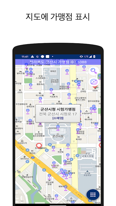Aplikacja, która pokazuje na mapie sprzedawców (podekscytowanych) w lokalnej walucie w Jeju według nazwy, kategorii i adresu